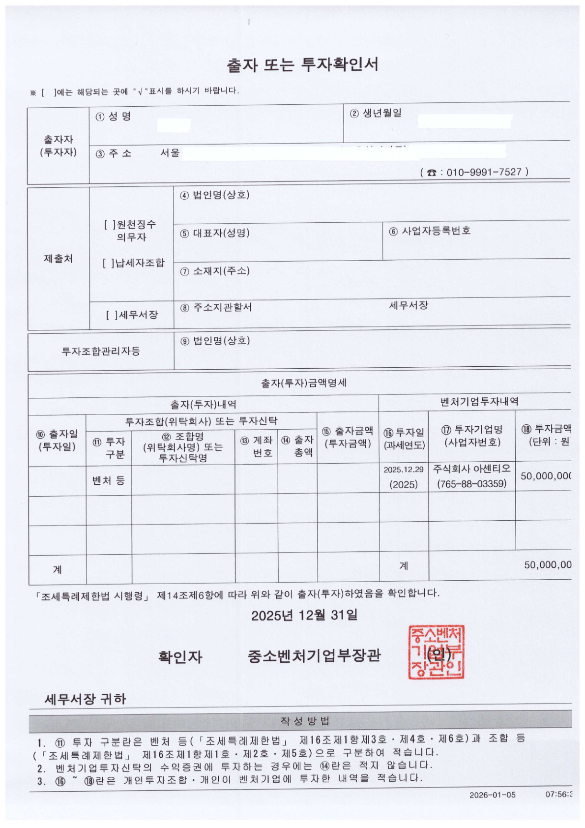 벤처투자확인서